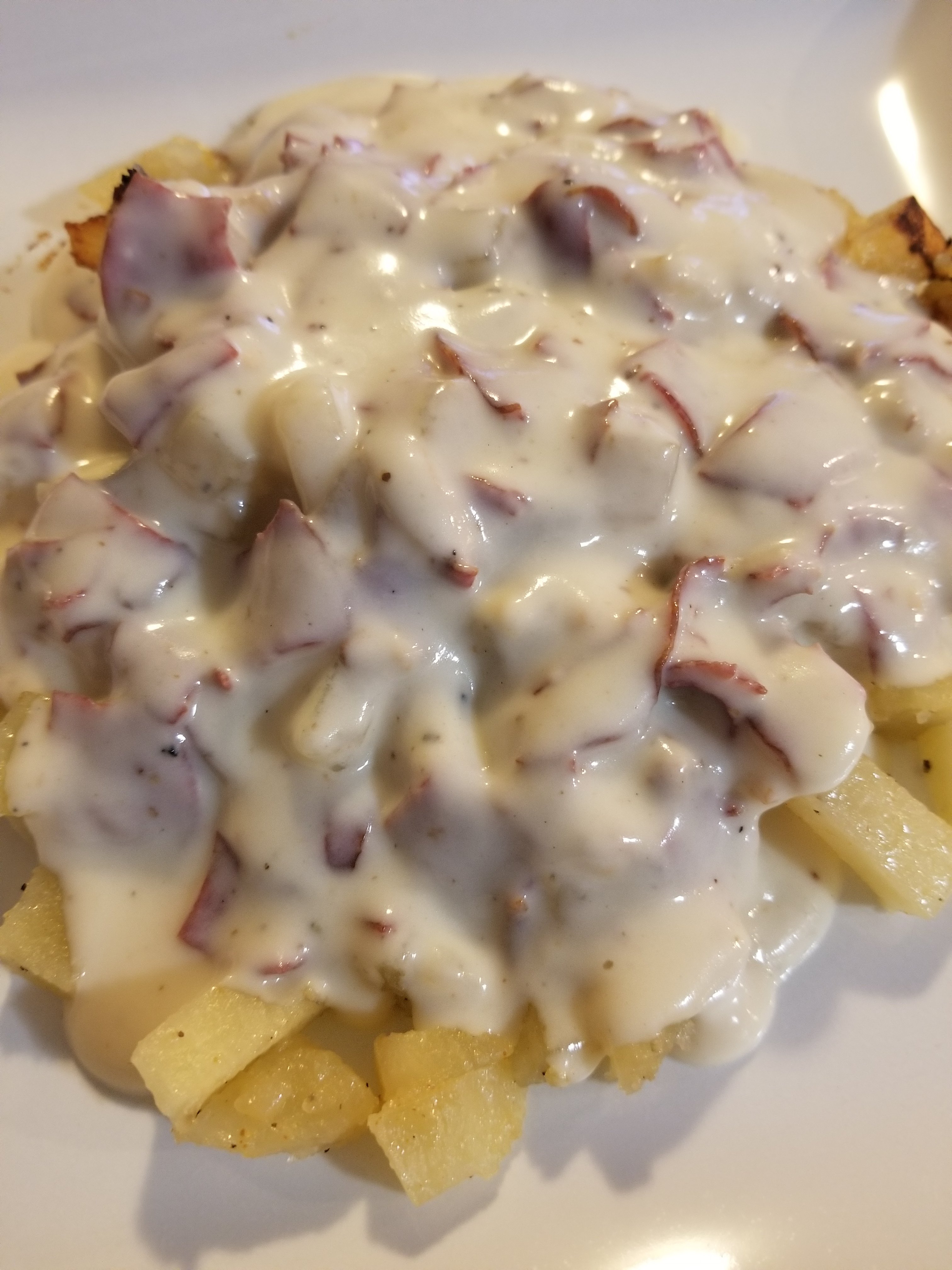 This may be my favorite meal, a lover of carbs and worshiper of gravey, this is the perfect pair!